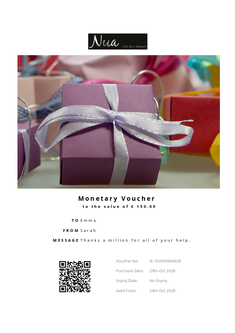 Nua Hair and Beauty allows you to purchase instantly printable gift vouchers, special offers and tickets using the Voucher Connect platform.